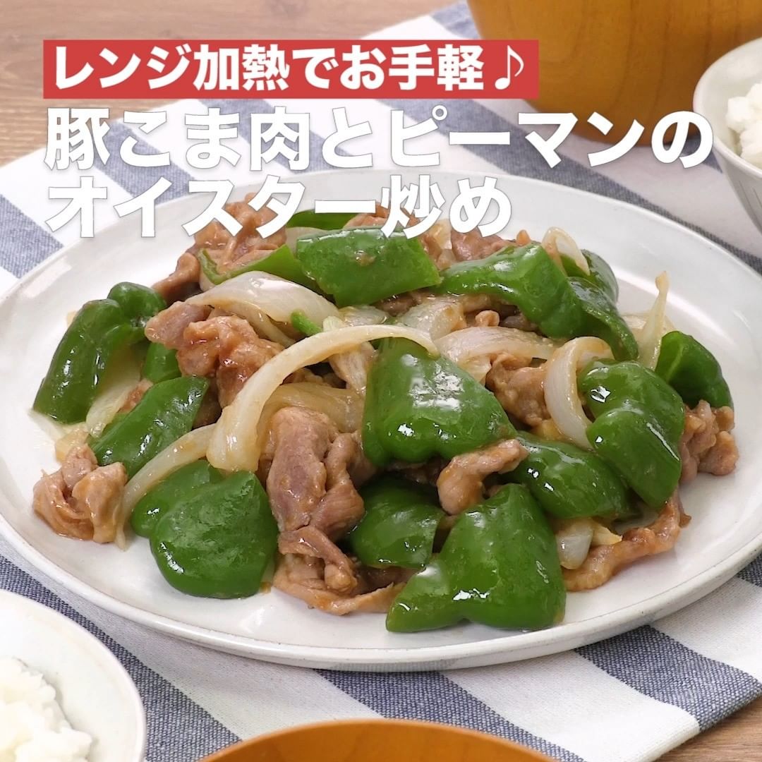 ③<レンジ加熱でお手軽♪豚こま肉とピーマンのオイスター炒め>