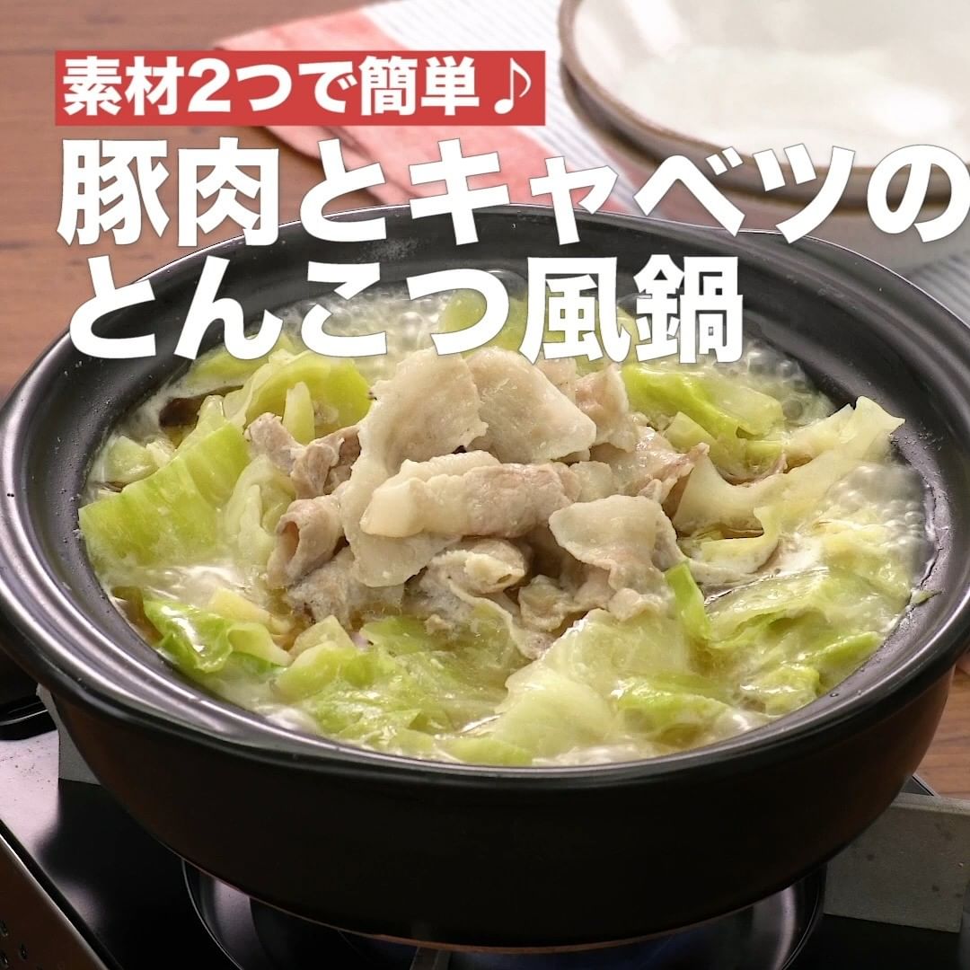 ①<素材2つで簡単♪豚肉とキャベツのとんこつ風鍋>