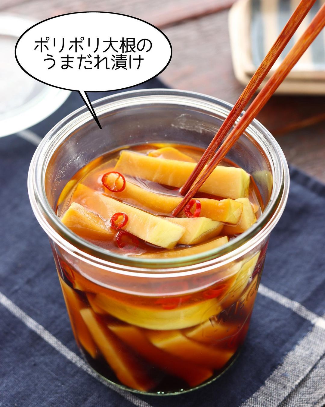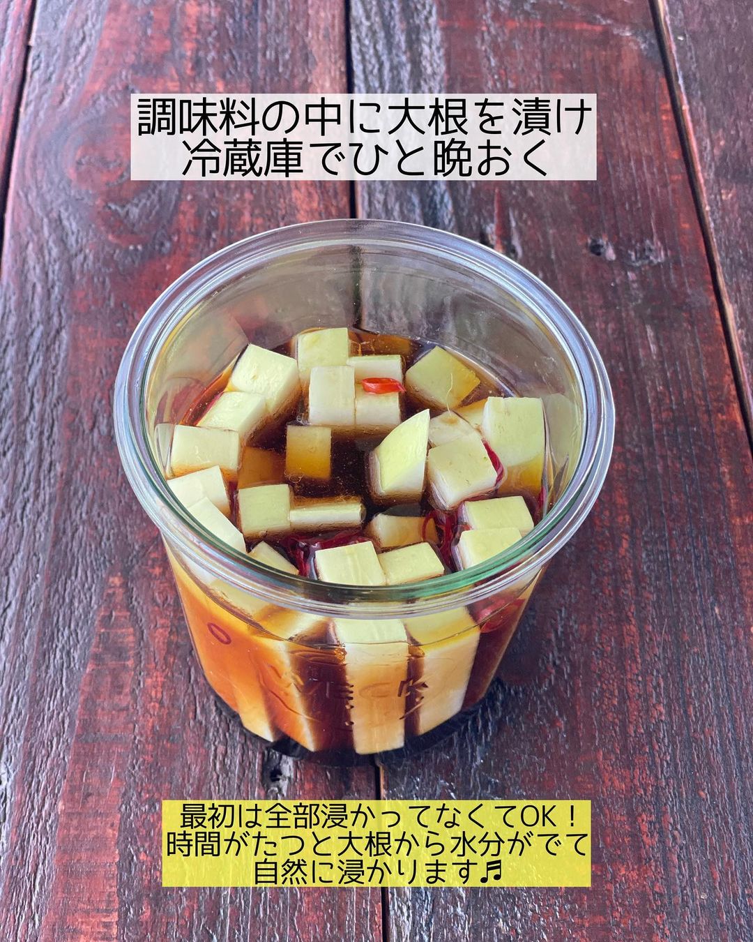時間が経つと、大根から水分がでてきて自然に全体が浸かります☺️💕