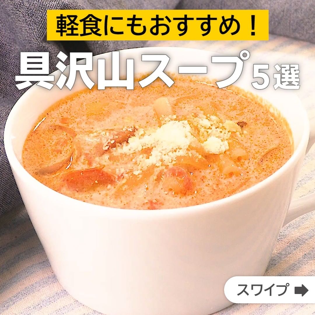 具沢山なトマトクリームスープです。マカロニやソーセージも入っているので食べ応え抜群!マカロニは別茹で不要なのも嬉しいポイント♪ほっこり温かいスープは、朝食や夜食にもおすすめです。
