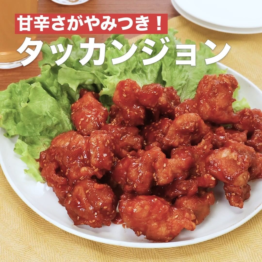 韓国の定番料理を再現!鶏の唐揚げに甘辛いソースをたっぷりからめた一品です。一口食べればやみつきになること間違いなし!お酒のお供にもおすすめです♪