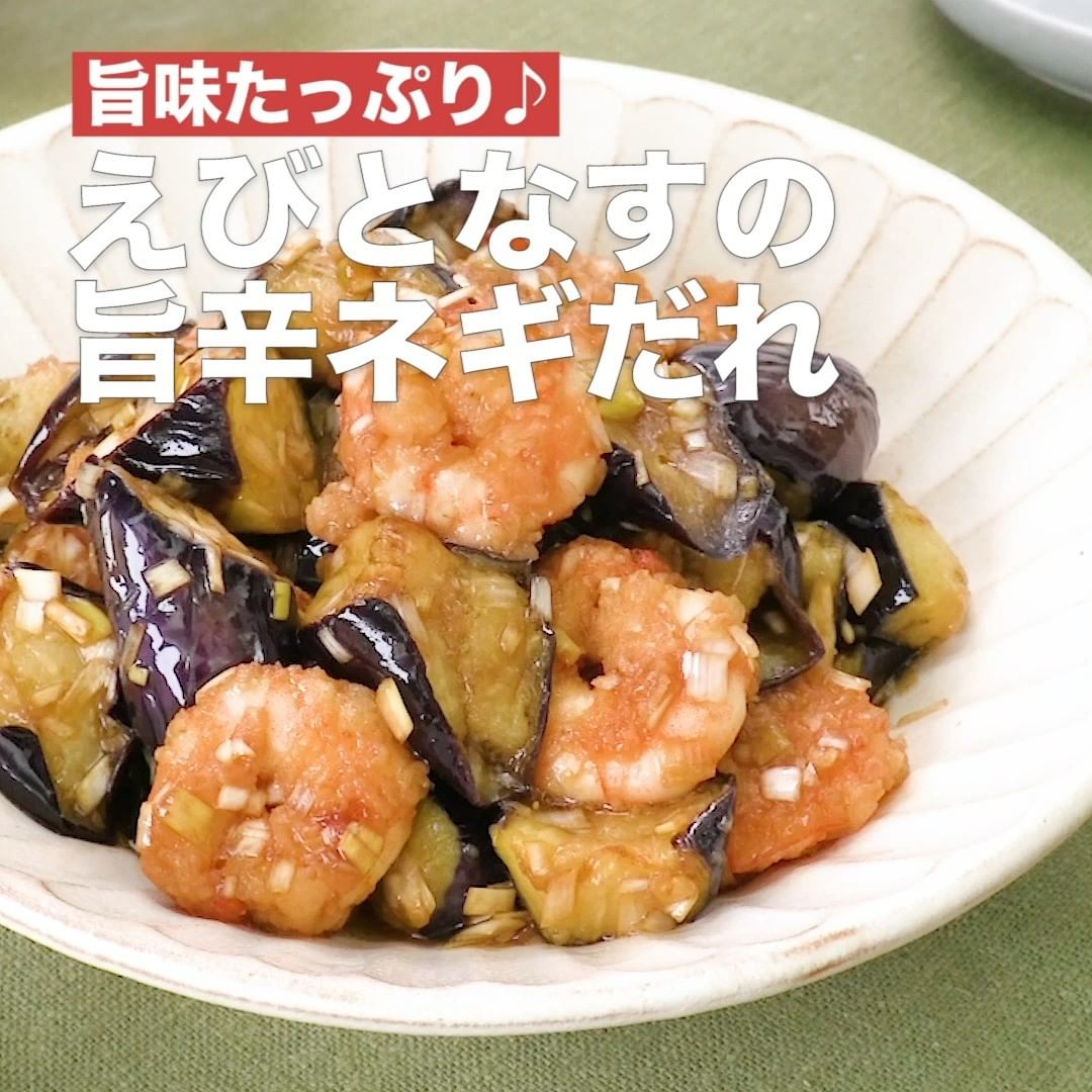 ⑥<旨味たっぷり♪えびとなすの旨辛ネギだれ>
