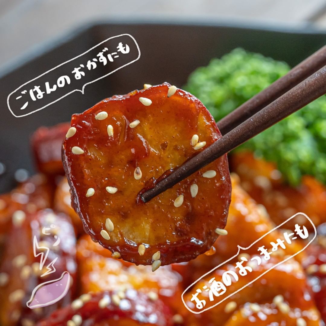 甘味のあるほっくりとしたさつまいも🍠と、ジューシーな鶏もも肉🍗に、コチュジャンが効いた甘辛ダレ🌶が絡んでとってもおいしいですよ!!