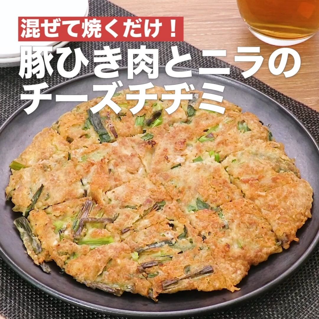 ③<混ぜて焼くだけ!豚ひき肉とニラのチーズチヂミ>