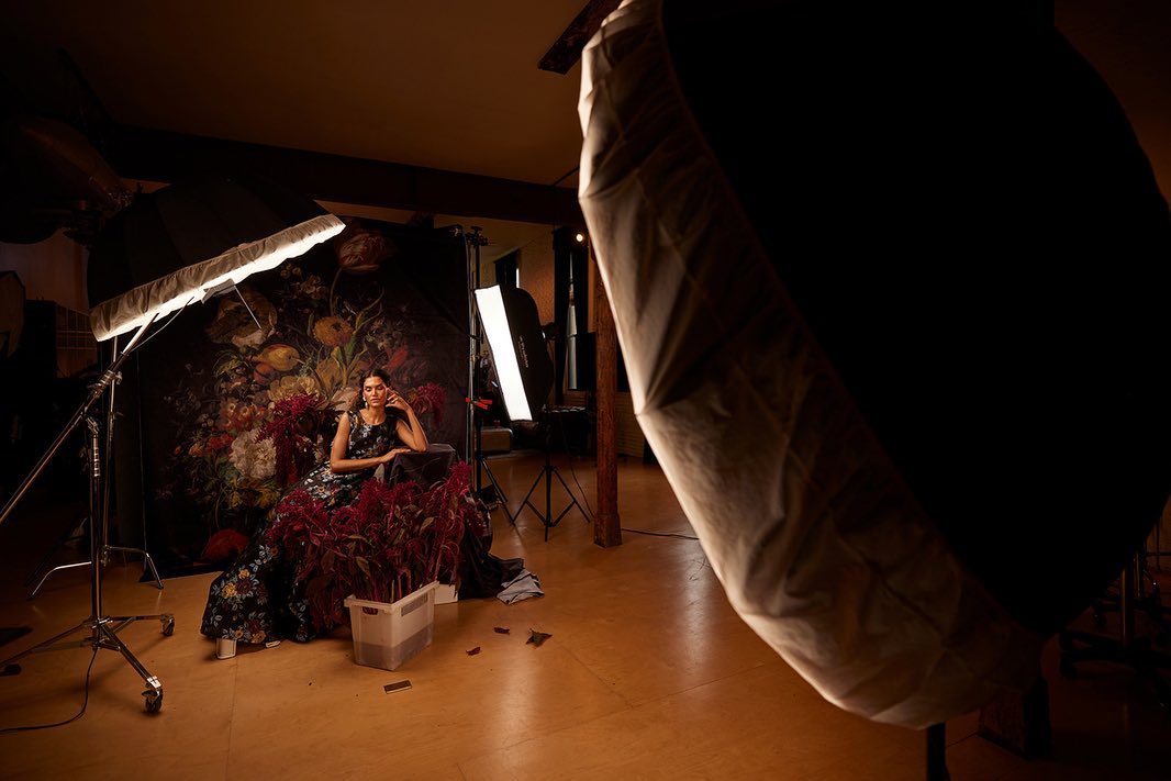 Photo by #CanonExplorerOfLight @lindsayadler_photo: “I often look to painterly techniques to help me create timeless portrait and fashion images. The painterly elements can be the color palette, the background, pose, lighting… you name it! For the background of this shot I printed out a painting of Baroque florals to help create visual interest in the scene and then layered in real floral elements to create depth. I didn’t want my image to look flat (a common problem with studio shots), so I created a foreground, middleground and background. Next, I selected the Canon EOS R5 with the Canon RF85mm F1.2L USM so that I could shoot at a wide aperture, kicking some foreground and background elements slightly out of focus (again creating the feeling of depth).