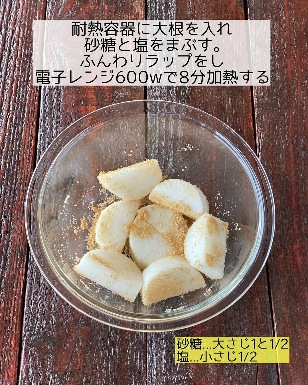 大根はレンジ加熱する際に砂糖と塩をまぶせば