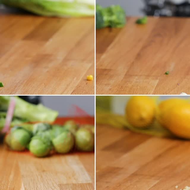 2. 紫キャベツ、ブロッコリー、赤ピーマン、チャイブ、にんじん、ピーナッツ、レタスを瓶に入れ、蓋を閉める。