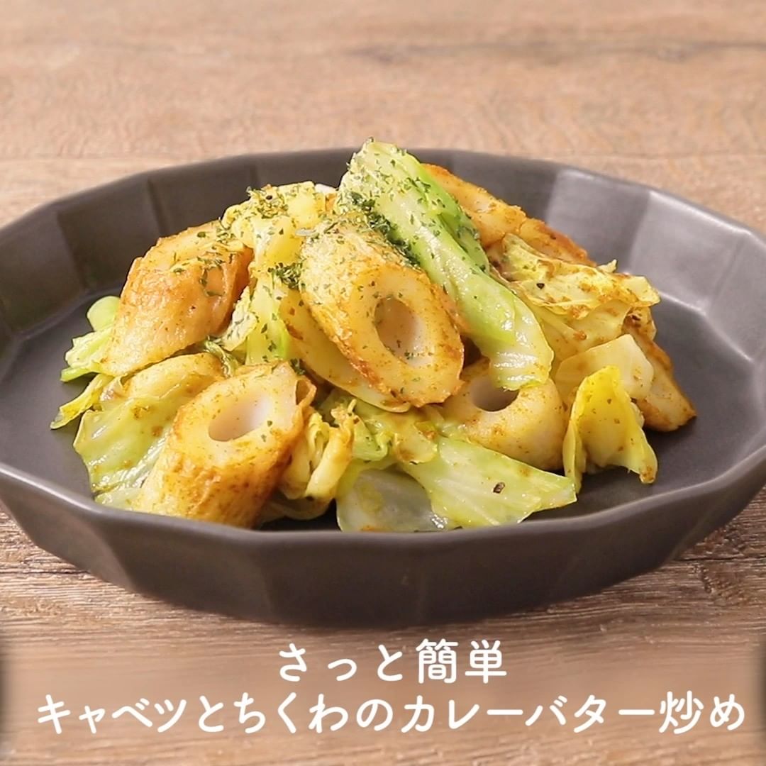 ①さっと簡単 キャベツとちくわのカレーバター炒め