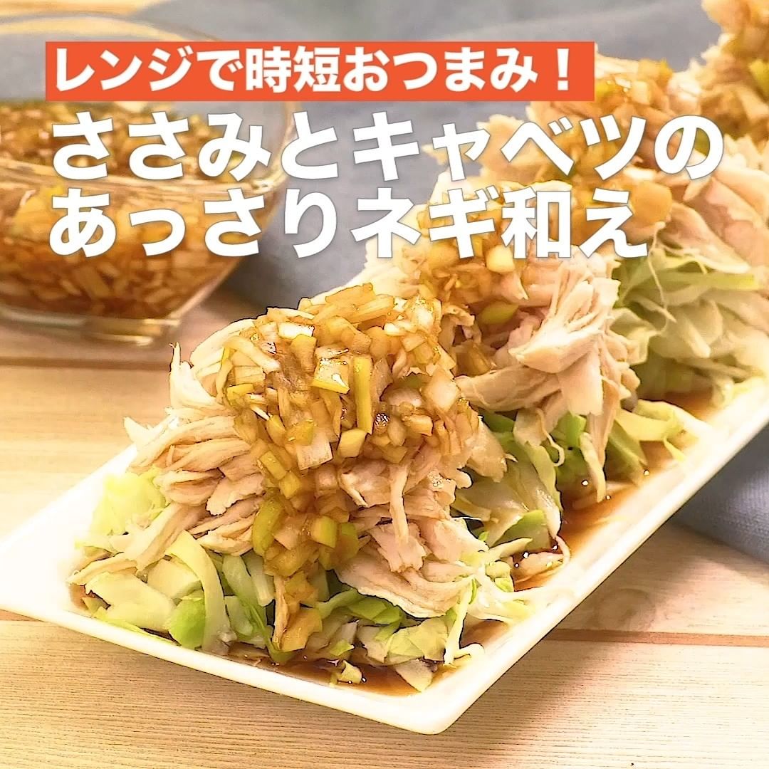 ②<レンジで時短おつまみ!ささみとキャベツのあっさりネギ和え>