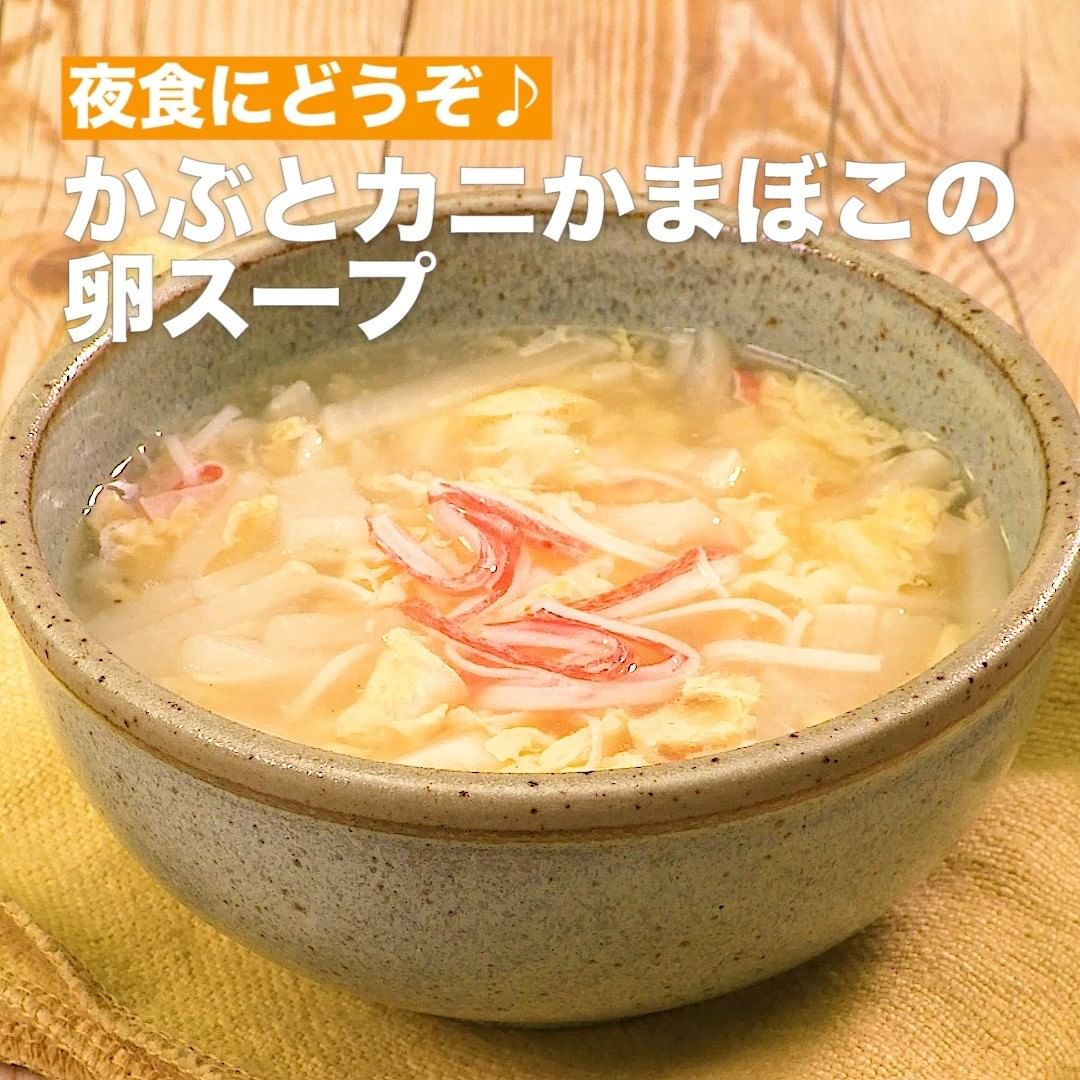 ③<夜食にどうぞ♪かぶとカニかまぼこの卵スープ>
