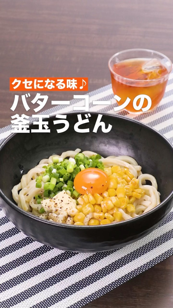 動画の詳細が気になる人はアプリで「バターコーンの釜玉うどん」で検索してみてくださいね♪