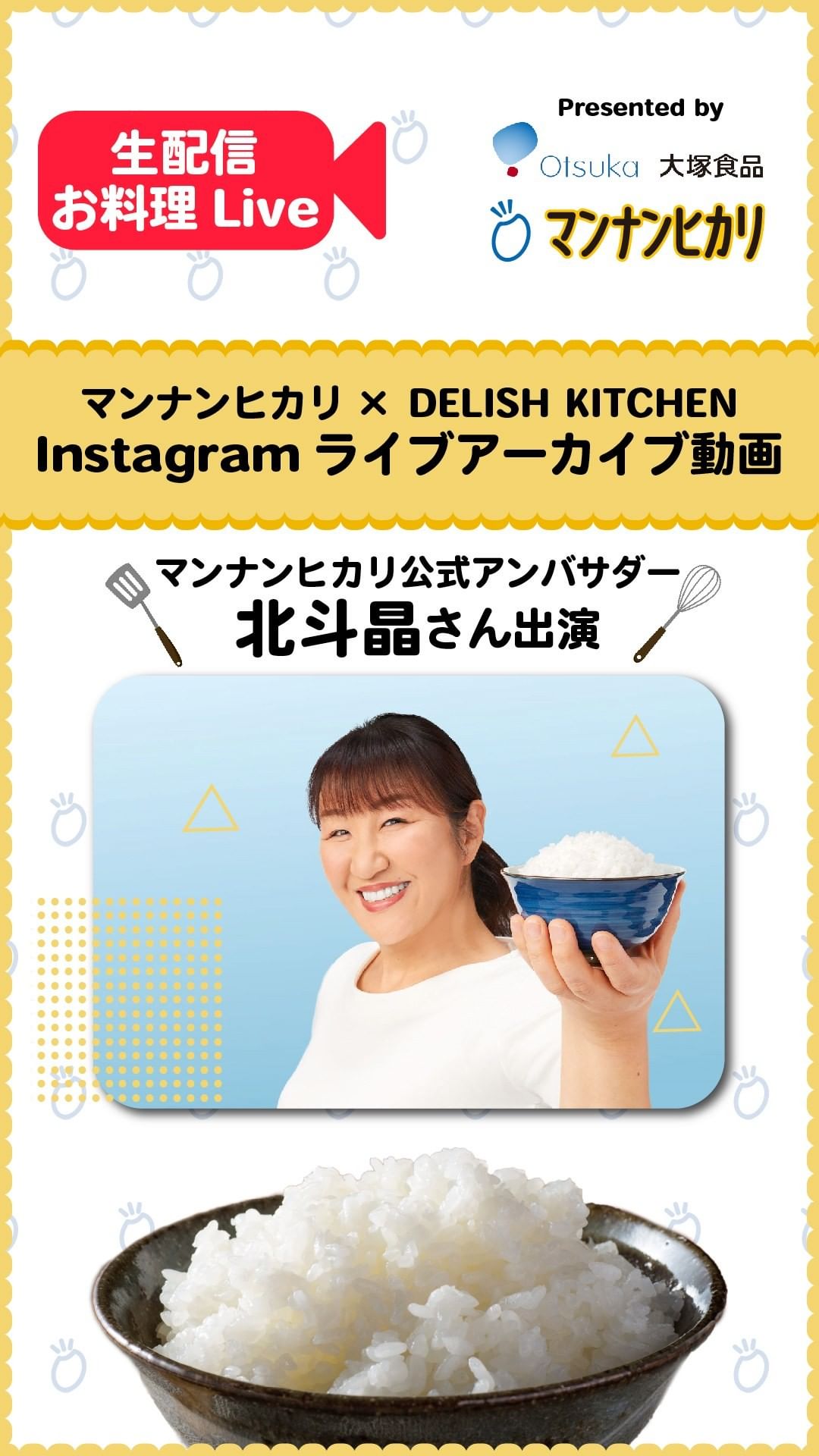 大塚食品「マンナンヒカリ」を使った「ねぎ塩豚バラ炒飯」を生配信したInstagramライブのアーカイブ動画です。