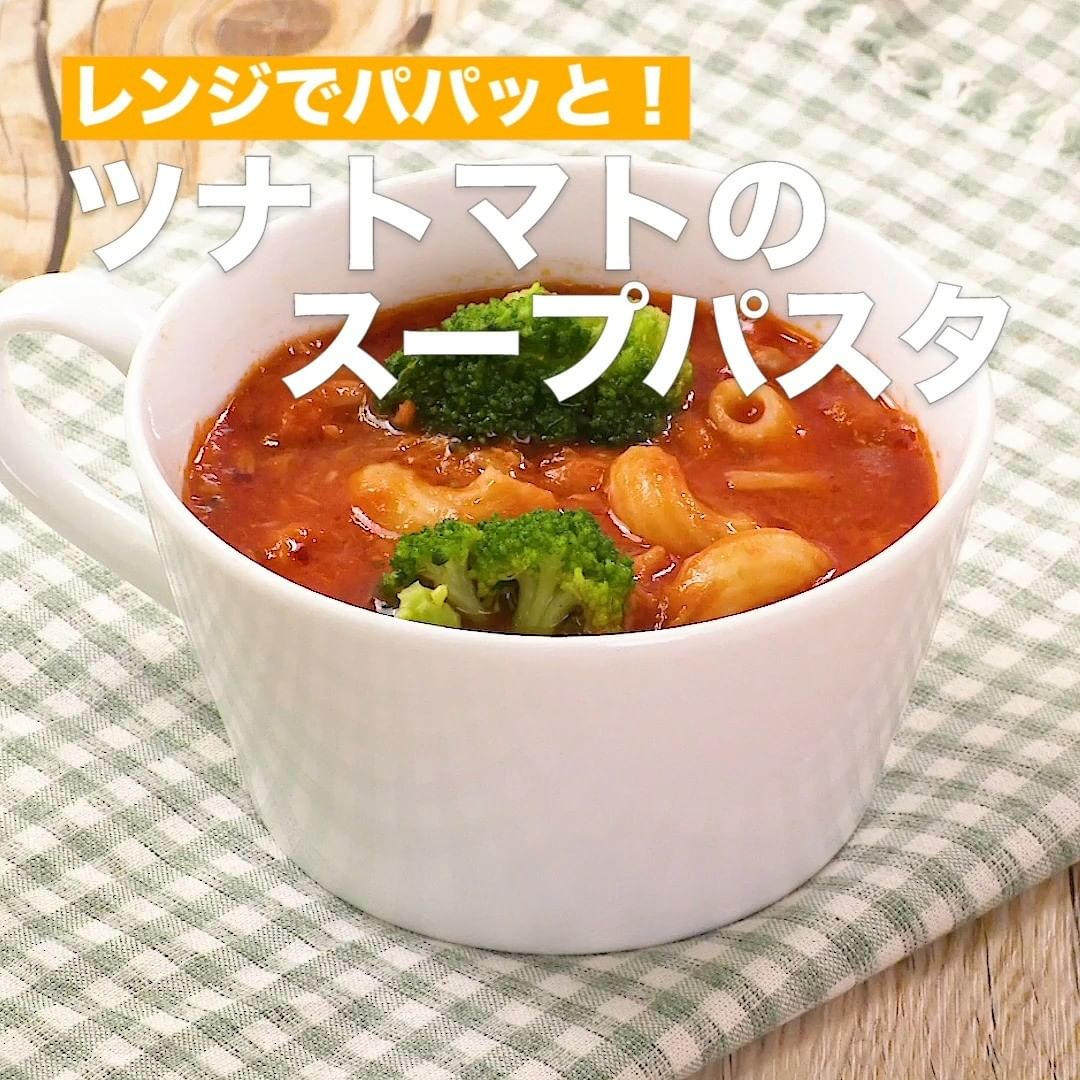 ②<レンジでパパッと!ツナトマトのスープパスタ>