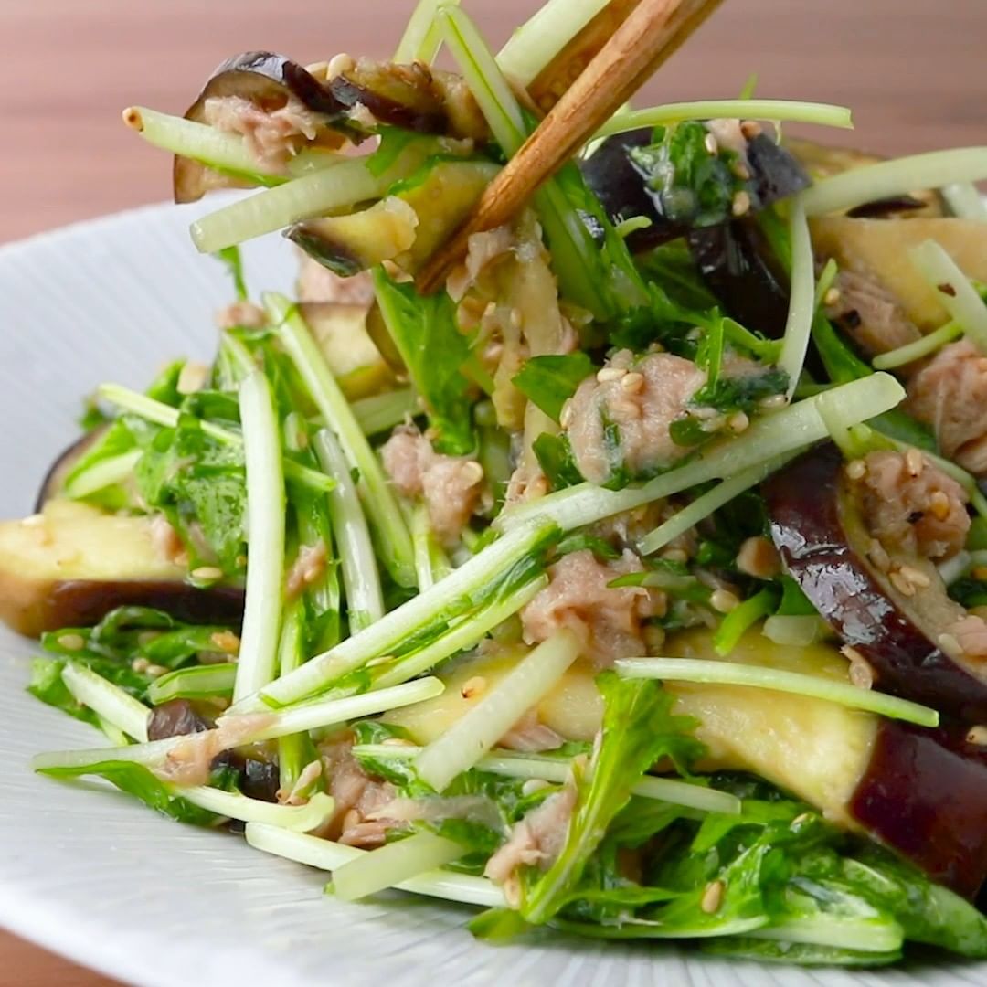 ④レンジで簡単 ナスと水菜のツナサラダ