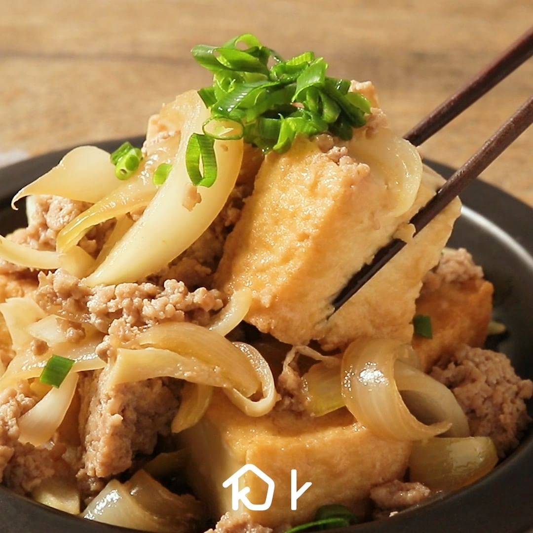 ①レンジで簡単 ひき肉と厚揚げの甘辛煮