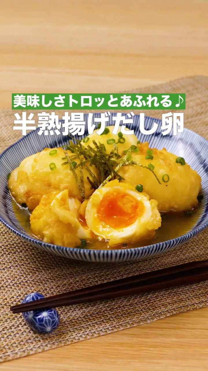 動画の詳細が気になる人はアプリで「半熟揚げだし卵」で検索してみてくださいね♪