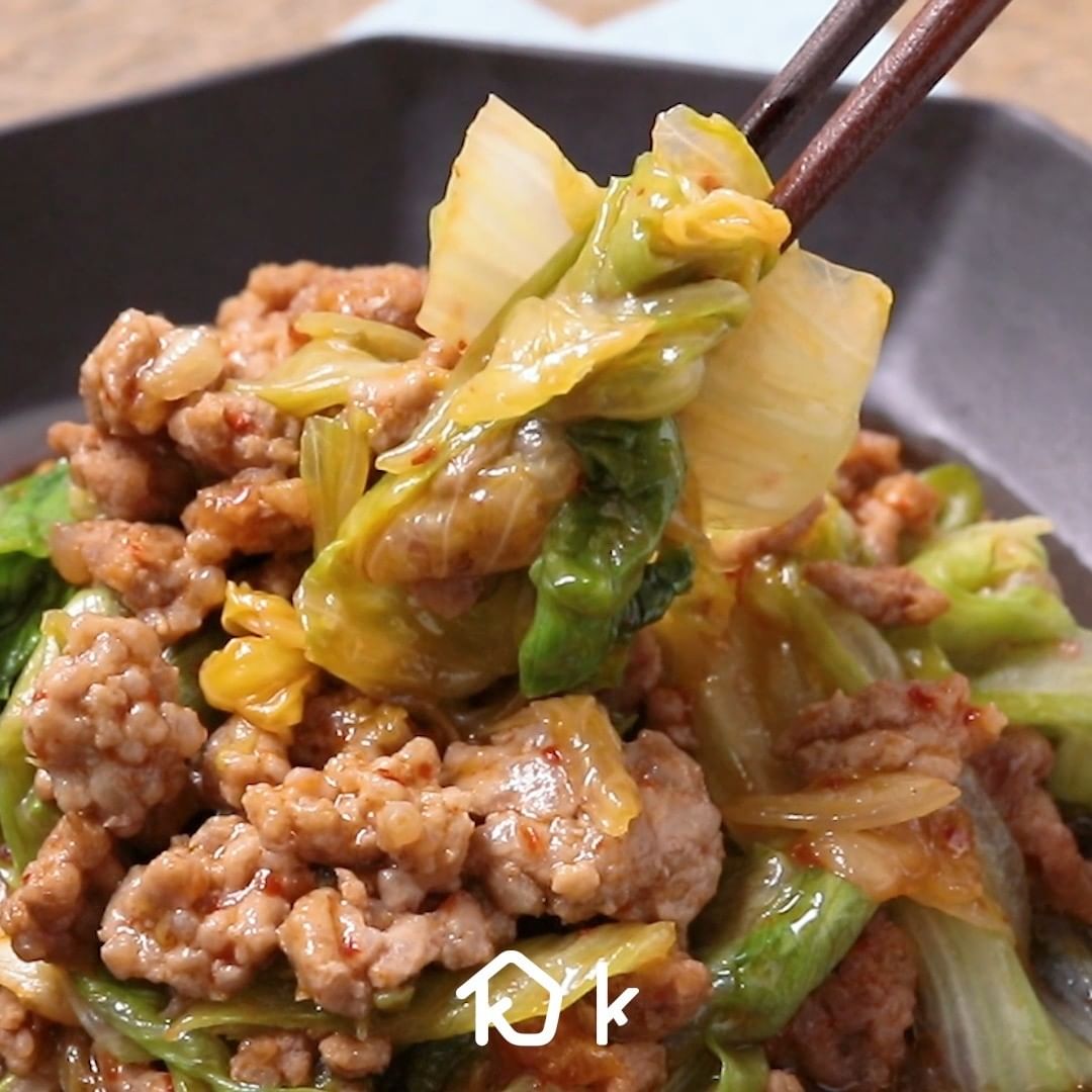 ④シャキシャキ レタスの豚ひきキムチ炒め