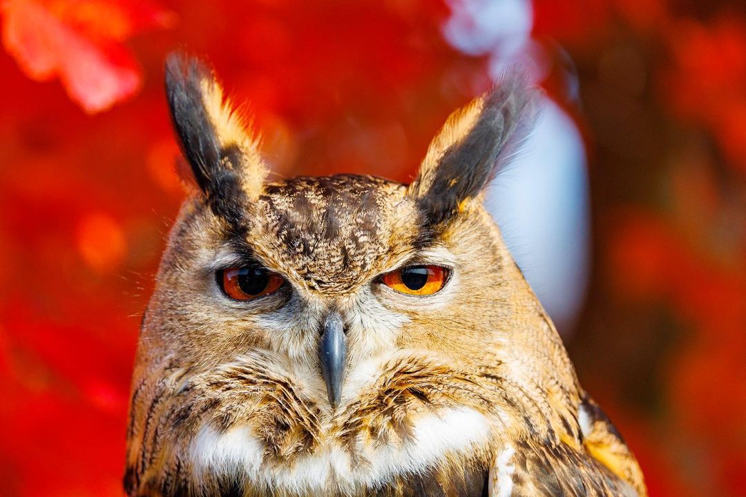 Photos by Canon Technical Advisor @drewmaccallumphoto: “Augie is a Eurasian Eagle Owl who is cared for by WINORR (Wildlife In Need Of Rescue and Rehabilitation) a non-profit organization in New York. I used the red fall color of the maple tree in the background and created a colorful background separation to draw attention to him. The RF100-500mm F4.5-7.1 L IS USM can give a blurry background even at f/6.3 when you have enough distance between you and your subject.”