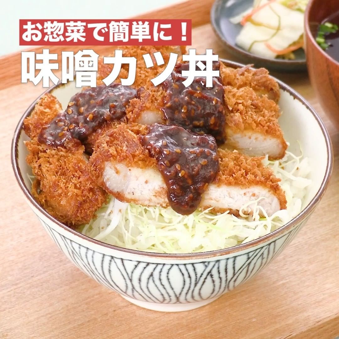 お惣菜のとんかつを一手間加えて味噌カツ丼に♪キャベツもカット野菜を使い、包丁いらず。みそだれを作るだけの簡単メニューです。