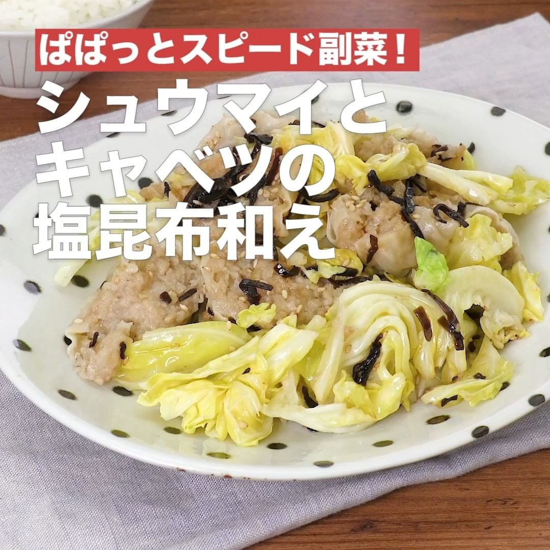④<ぱぱっとスピード副菜!シュウマイとキャベツの塩昆布和え>