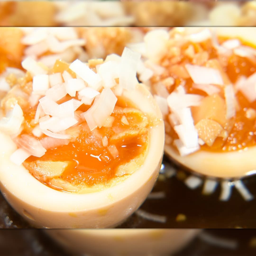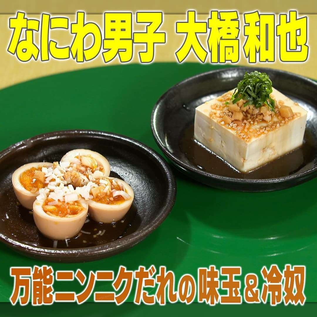 @Kajiyarou Kajiyarou: なにわ男子・大橋和也さんの『万能ニンニクだれの味玉&冷奴』 ①ボウルにめんつゆ(3倍濃縮・140ml)水(90ml)きざみにんにく(125g 瓶の約 8 割 2021-11-30 なにわ男子・大橋和也さんの『万能ニンニクだれの味玉&冷奴』 ①ボウルにめんつゆ(3倍濃縮・140ml)水(90ml)きざみにんにく(125g 瓶の約 8 割)を入れて混ぜ、タレを作る ②タレに半熟ゆで卵(5個)を入れ冷蔵庫で8時間ほど漬ける ③器に味玉を盛り、ニンニクだれ、長ネギのみじん切り(適量)をトッピングして完成! ★お豆腐にかけて冷奴のタレにするのもオススメ! #家事ヤロウ #なにわ男子 #大橋和也 #きざみにんにく #ニンニク #cooking #food Ciao, Nihon.