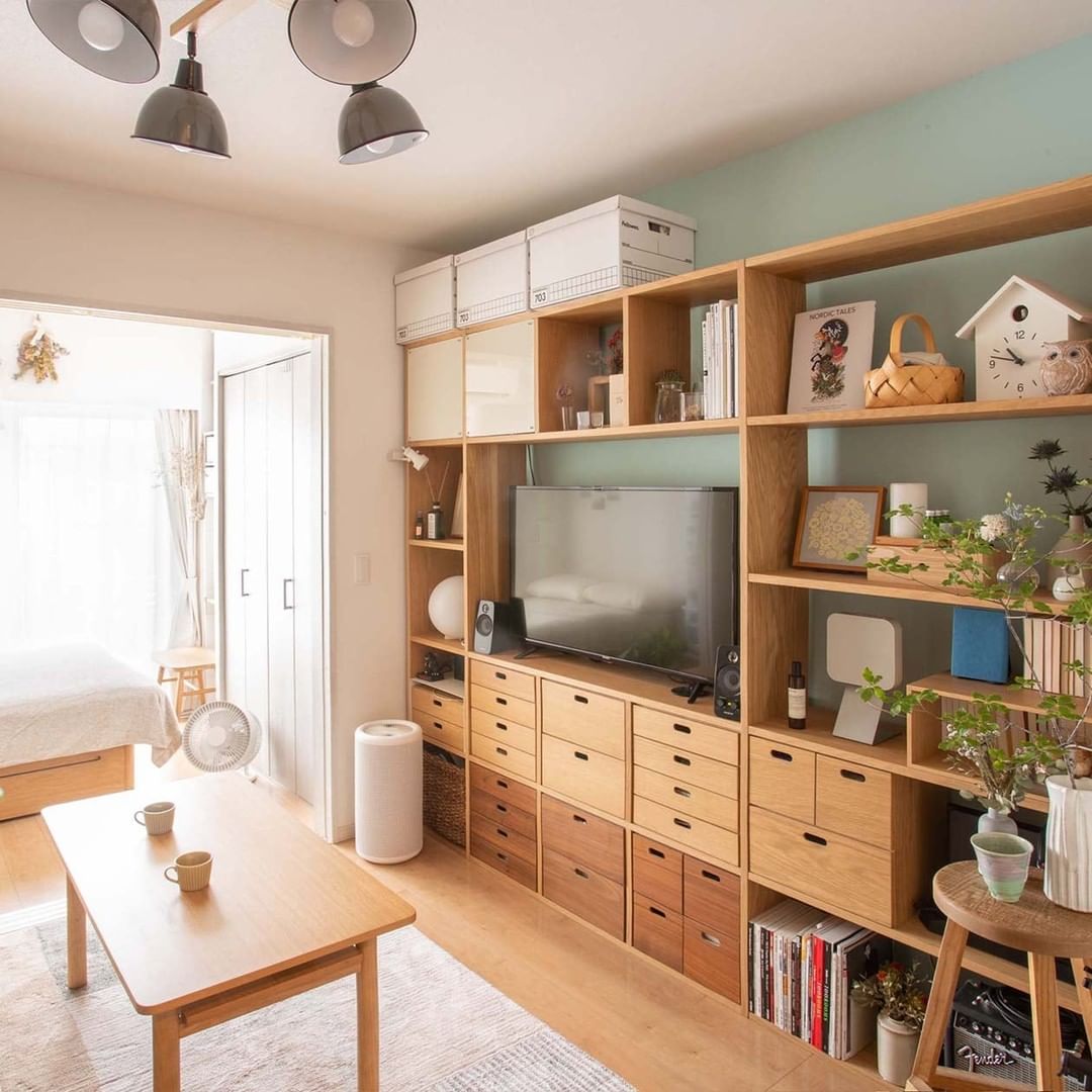 背板がないため、壁紙の色を生かした部屋づくりも楽しめます。