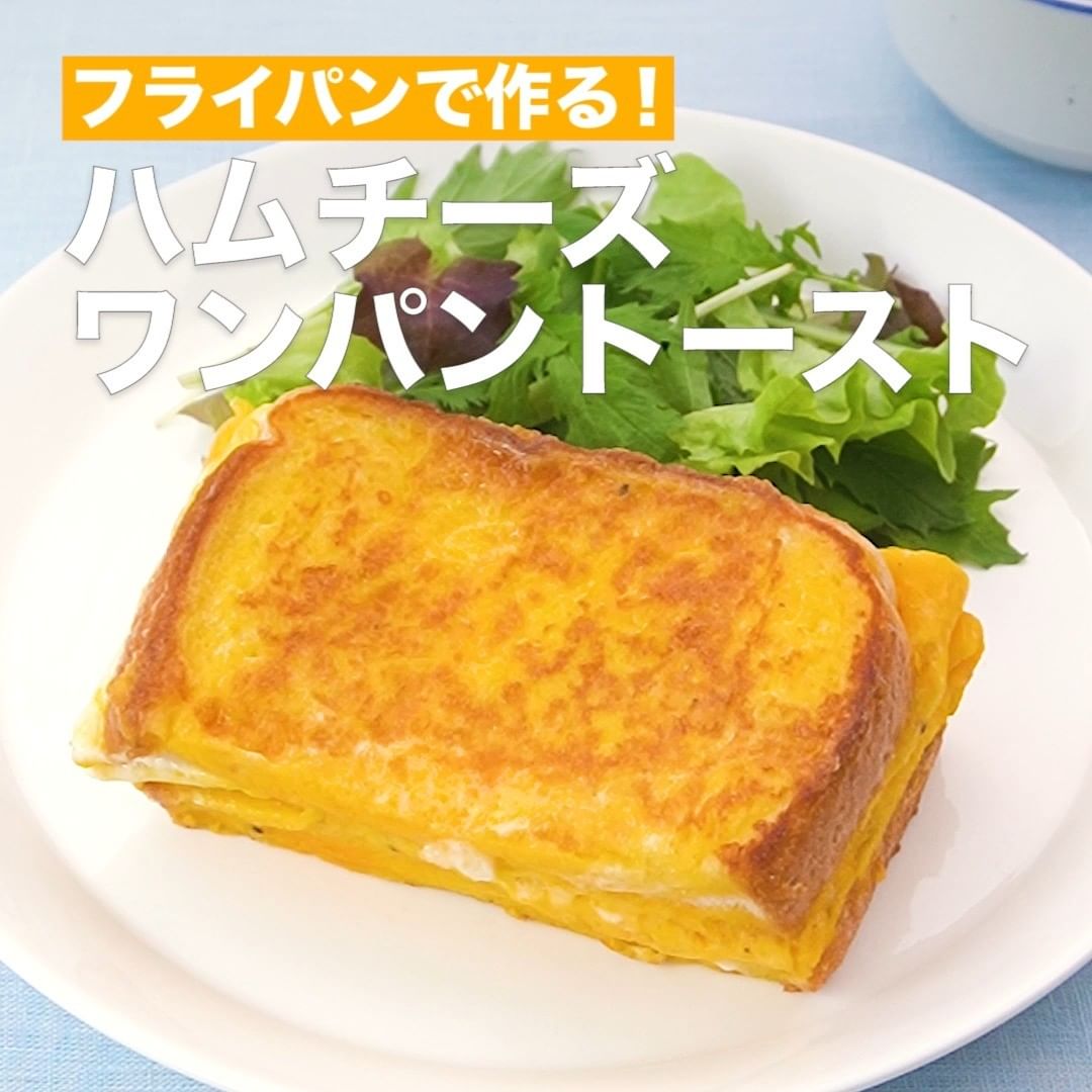 フライパン1つで作れるワンパントーストをご紹介します♪ハムとチーズの定番の組み合わせです!忙しい日の朝食や、ボリュームもあるので休日のブランチにとってもおすすめです♪