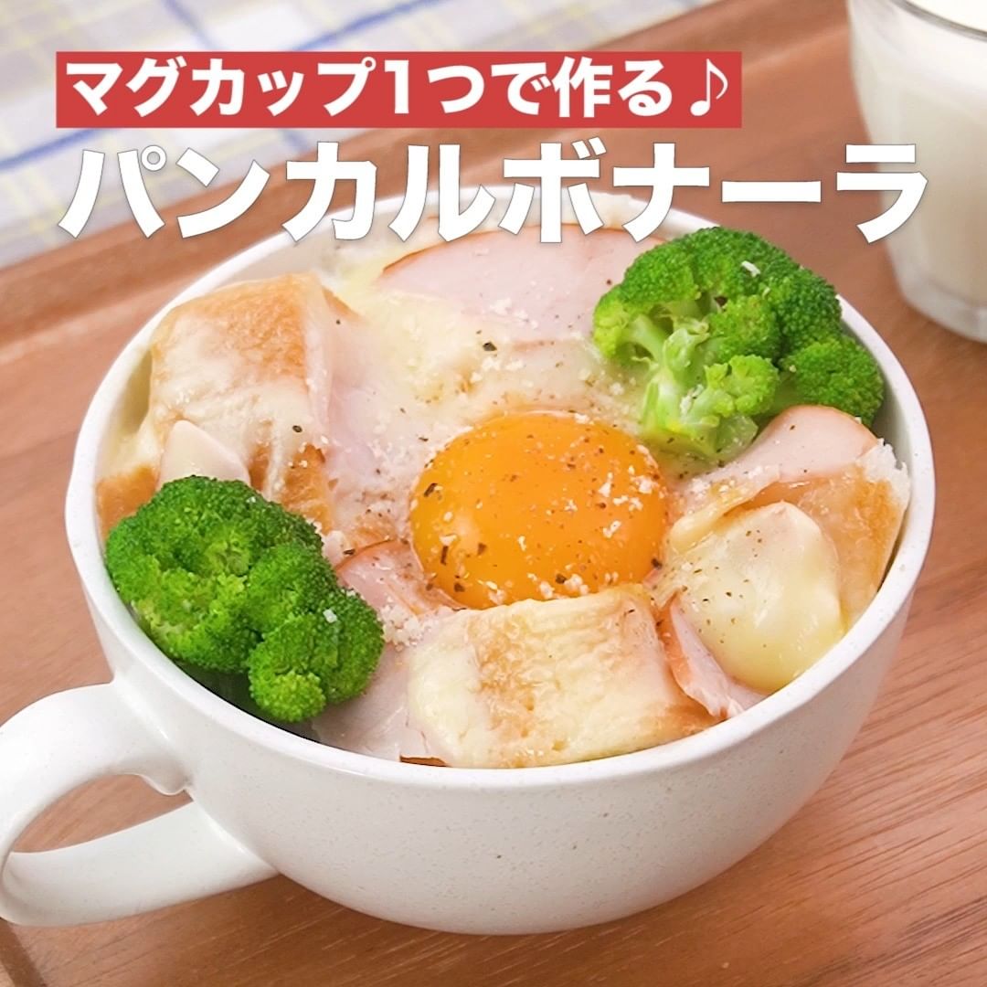 ⑦<マグカップ1つで作る♪パンカルボナーラ>