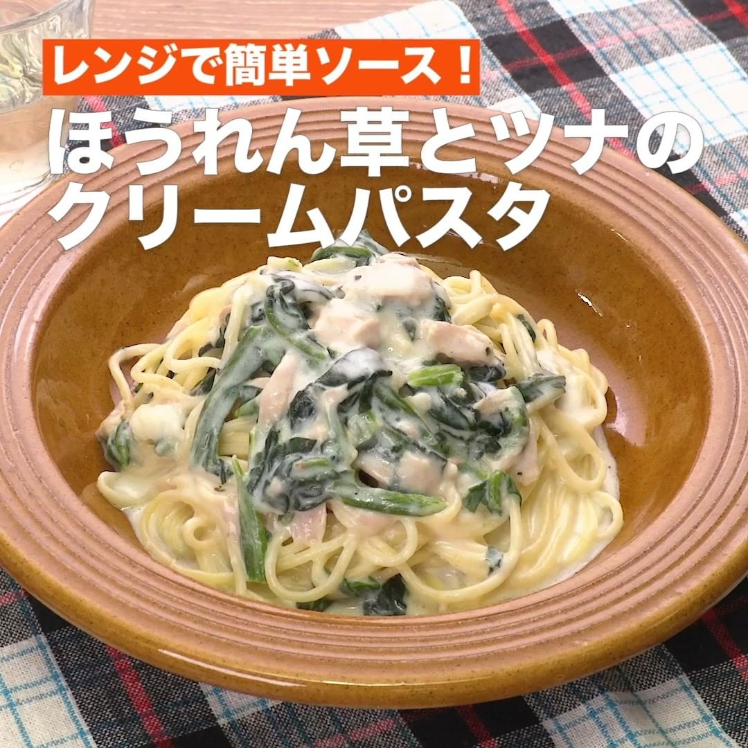 ③<レンジで簡単ソース!ほうれん草とツナのクリームパスタ>