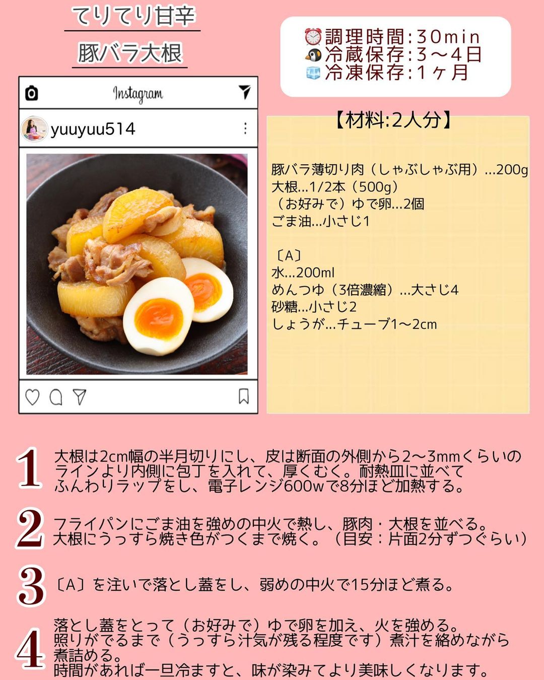 【第𝟺位】 #てりてり甘辛豚バラ大根