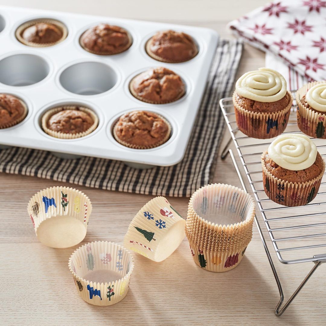 カップケーキやマフィンを手づくりするのもステキです。お子さまにもぴったりのエプロンでクリスマス気分を盛り上げましょう。コック帽はゴムで調整できるので頭のサイズを選びません。