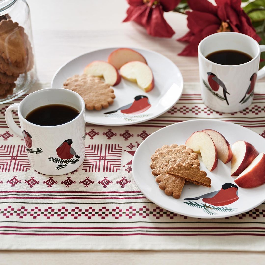 白いサイドプレートに描かれたのは冬にやってくるウソという鳥。赤色のアクセントがクリスマスにもぴったり。