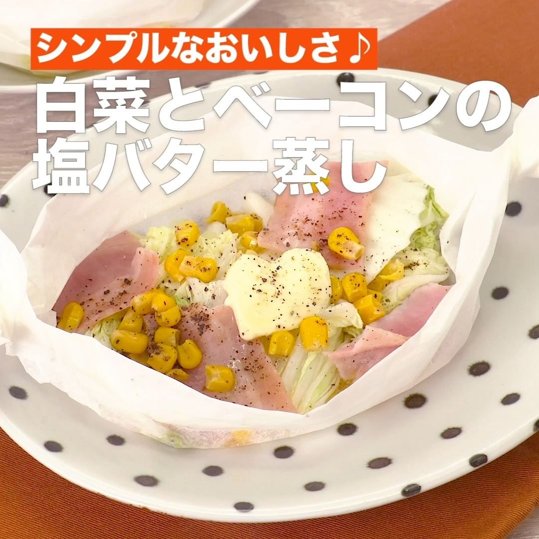 ⑥<シンプルなおいしさ♪白菜とベーコンの塩バター蒸し>