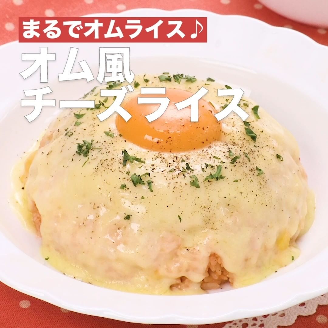包むのが難しいオムライスもこのレシピなら簡単!ケチャップライスにチーズを被せて卵黄をのせるだけのアレンジオムライスです♪手軽に済ませたいランチや忙しい方にもぴったりなのでぜひお試しください!