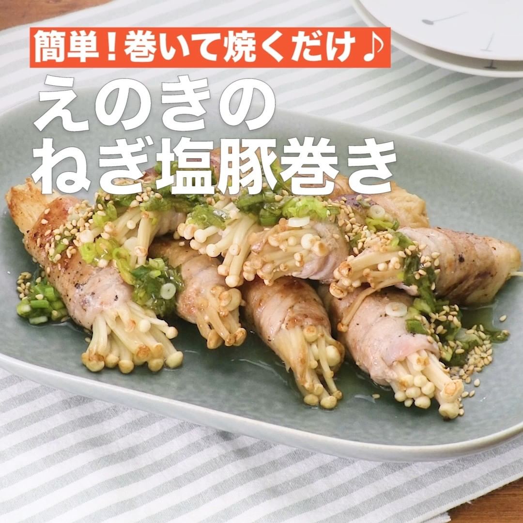 ⑥<簡単!巻いて焼くだけ♪えのきのねぎ塩豚巻き>