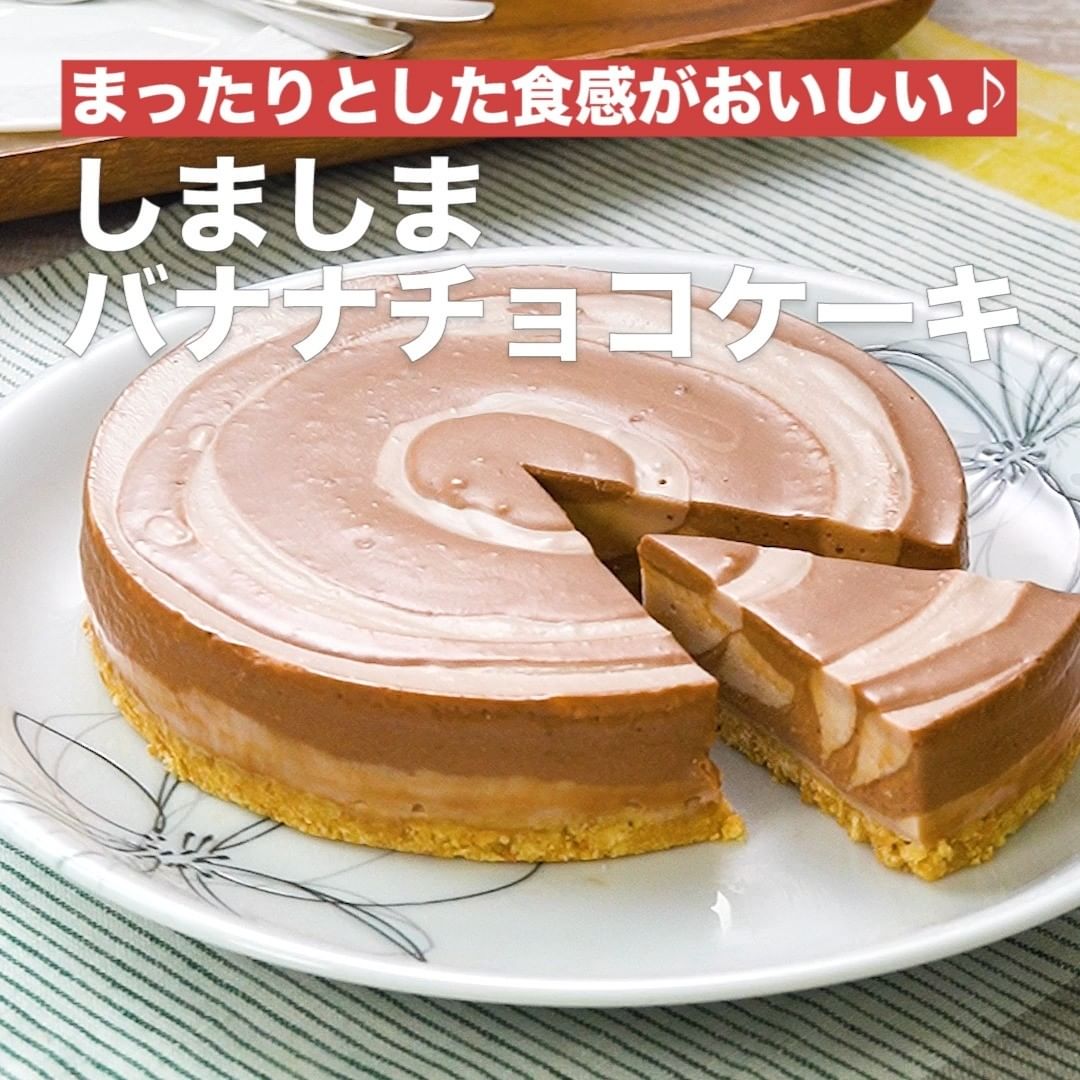 写真写りいいこと間違いなし♡しましま模様が可愛い、バナナとチョコレートの焼かないケーキをご紹介します。濃厚なチョコレートとバナナの甘い香りがおいしい!しましまは交互に生地を流し込んで作ります♪