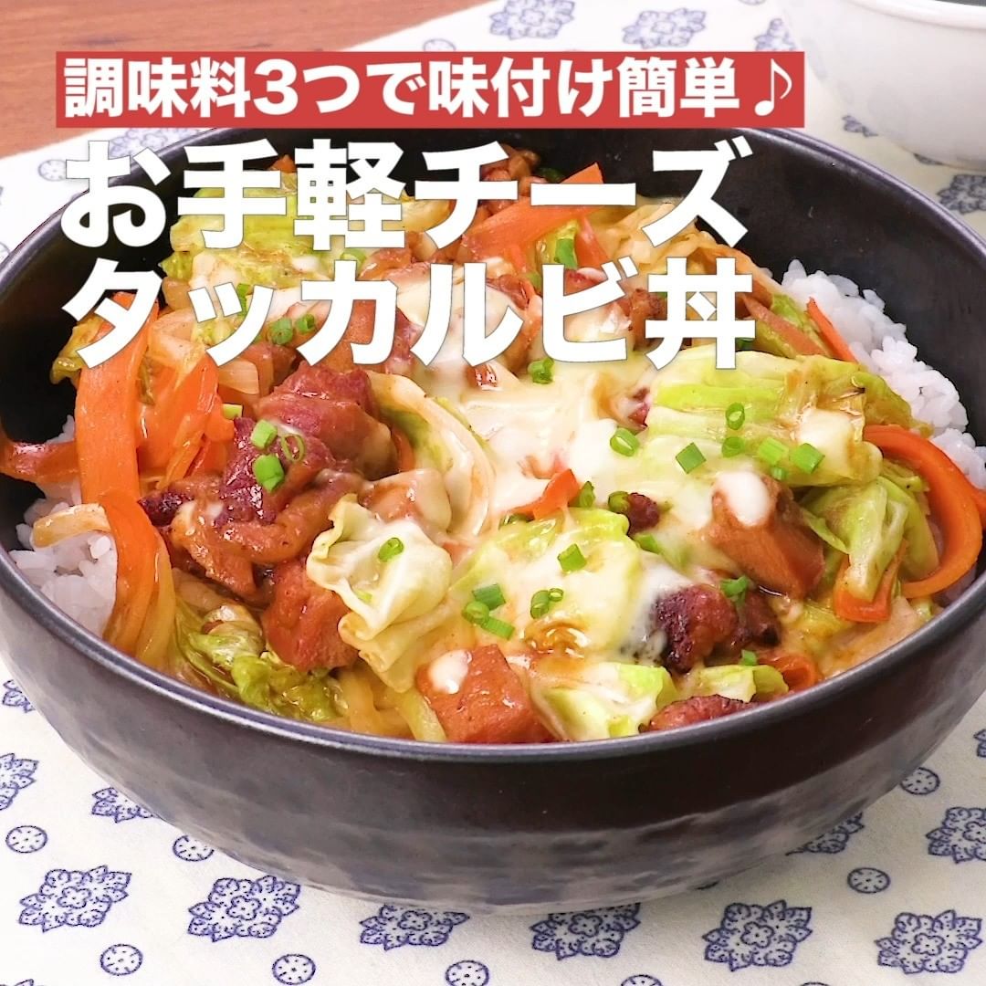 ④<調味料3つで味付け簡単♪お手軽チーズタッカルビ丼>