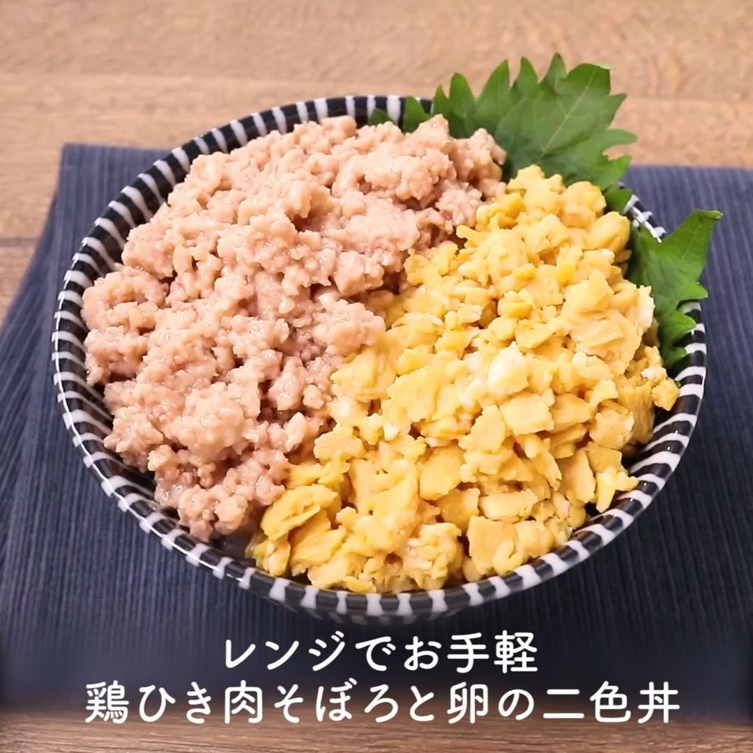 ⑤レンジでお手軽 鶏ひき肉そぼろと卵の二色丼
