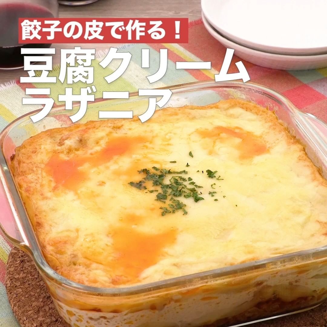 ホワイトソースの代わりに豆腐のクリームを使って簡単にアレンジしました!餃子の皮を使うことで手軽にラザニアが作れます♪