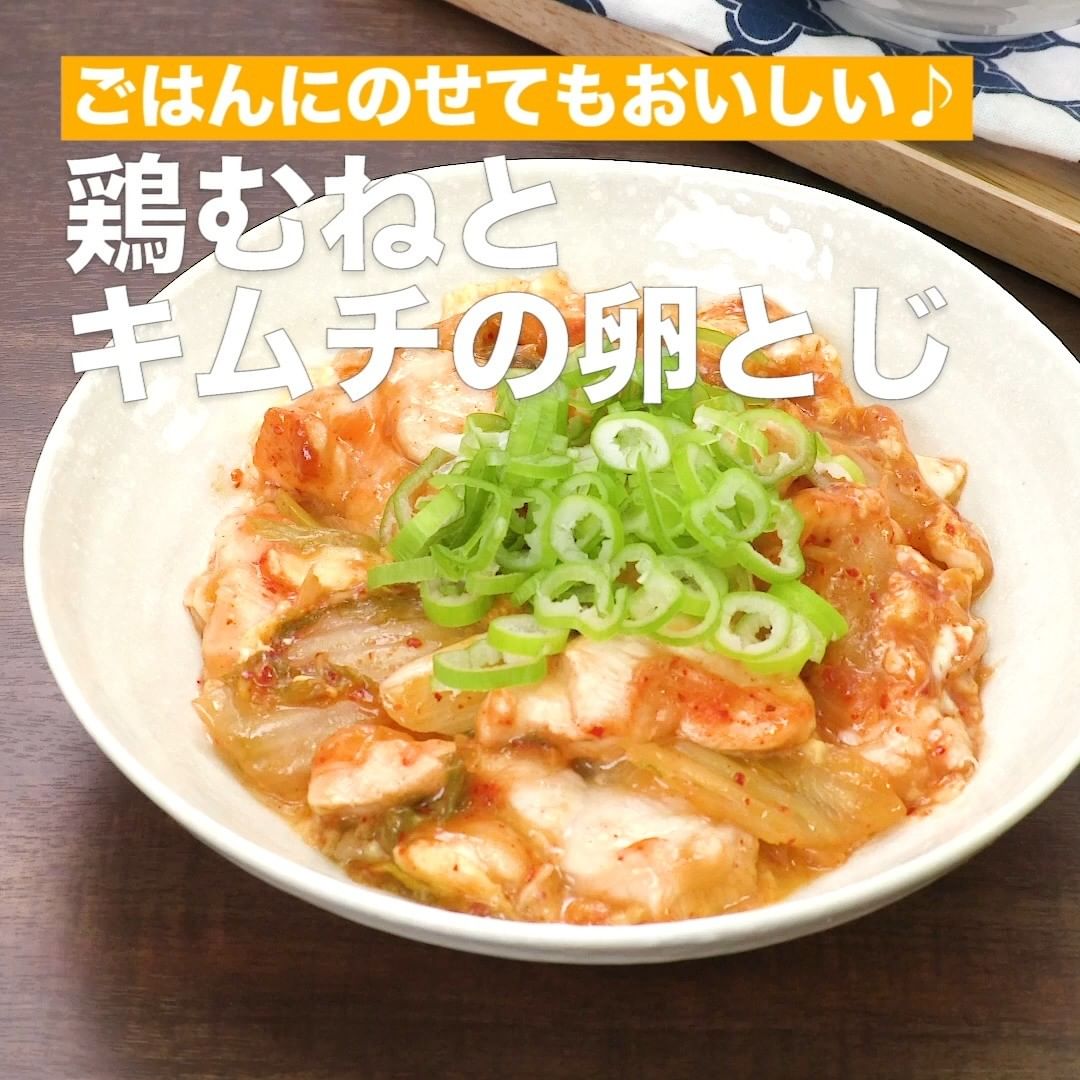 ⑥<ごはんにのせてもおいしい♪鶏むねとキムチの卵とじ>