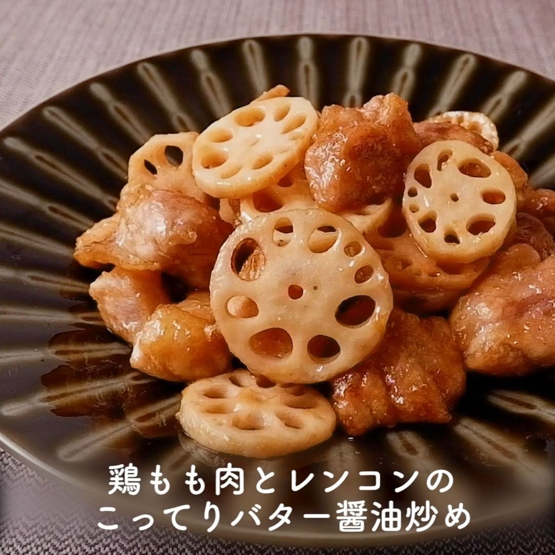 ⑤鶏もも肉とレンコンのこってりバター醤油炒め