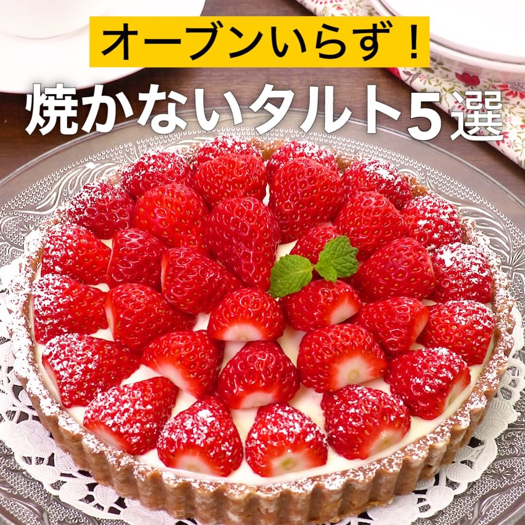 オーブン不要だから作りやすい♪フレッシュないちごのおいしさを楽しめるタルトケーキです。ティータイムにおすすめです。