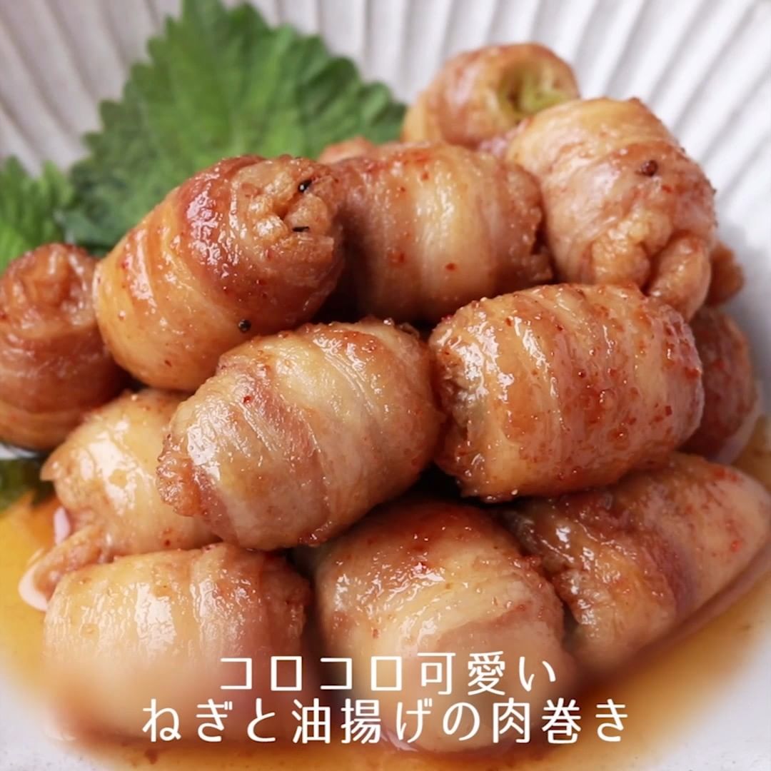 ②コロコロ可愛い ねぎと油揚げの肉巻き