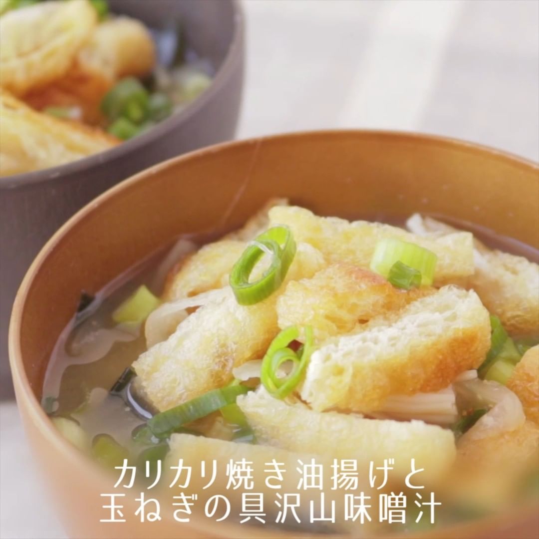 ⑤カリカリ焼き油揚げと玉ねぎの具沢山味噌汁