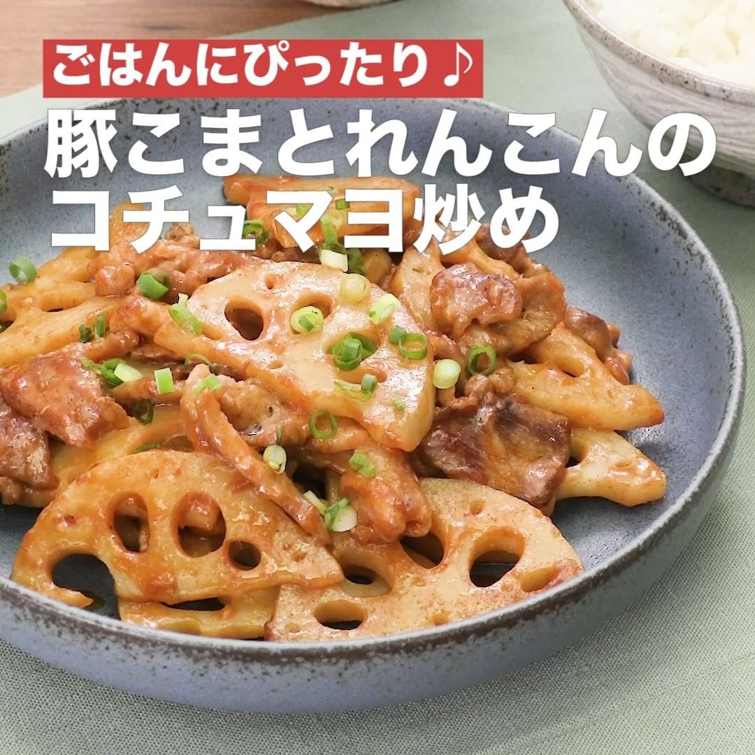 ⑥<ごはんにぴったり♪豚こまとれんこんのコチュマヨ炒め>
