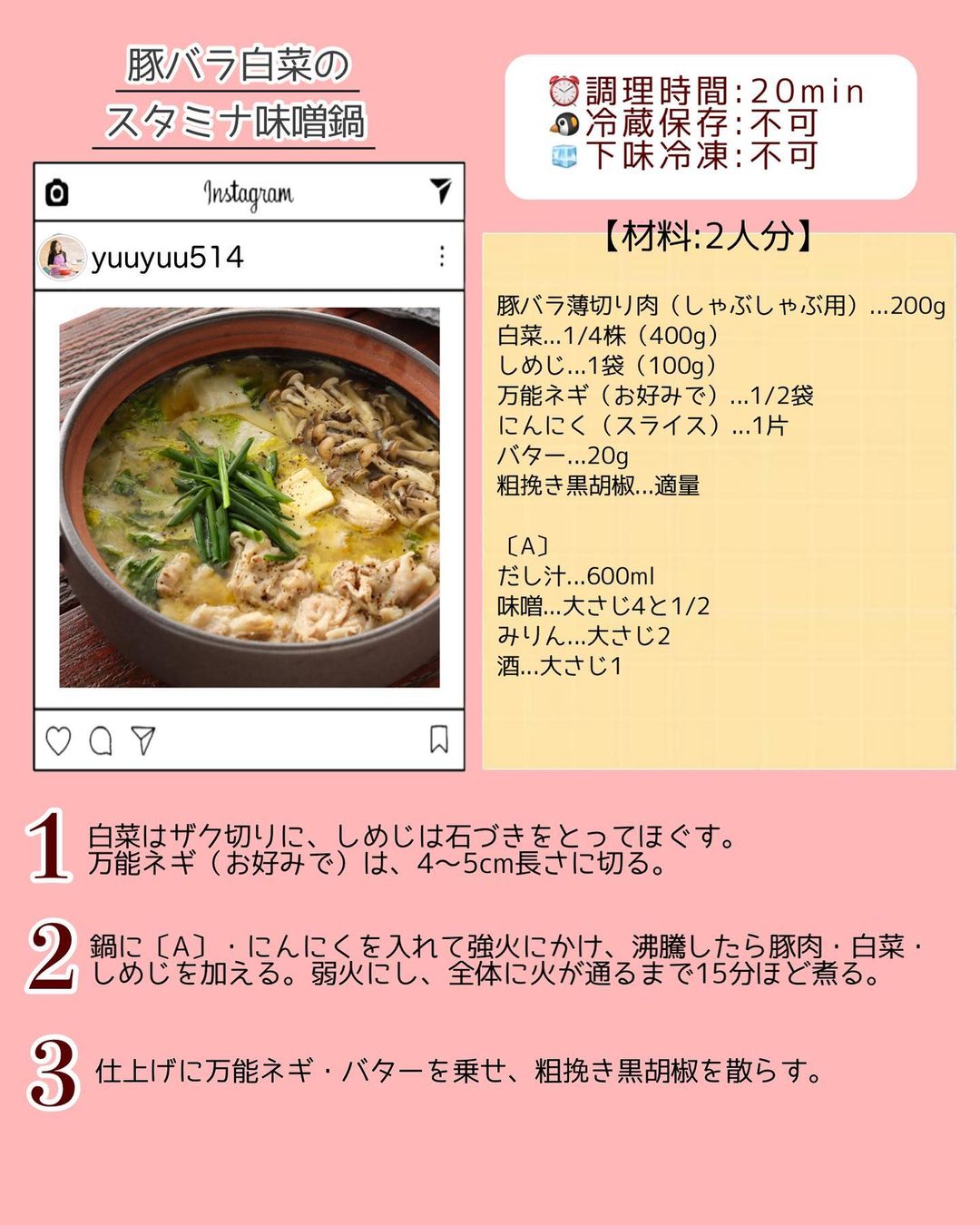 𓎩 #豚バラ白菜のスタミナ味噌鍋