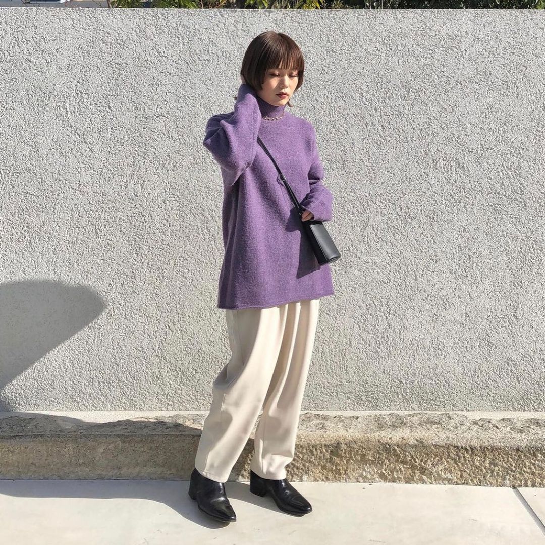 #ブラッシュドヤーンハイネックセーター