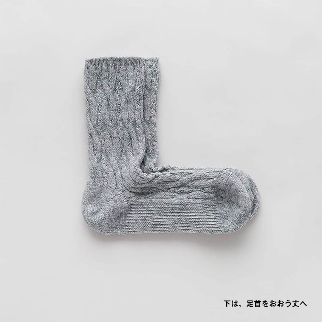 リブ編みなど厚みのある編地は、網目の間に空気の層が生まれるため、あたたかさを保ちやすく、寒い時期の足元におすすめです。