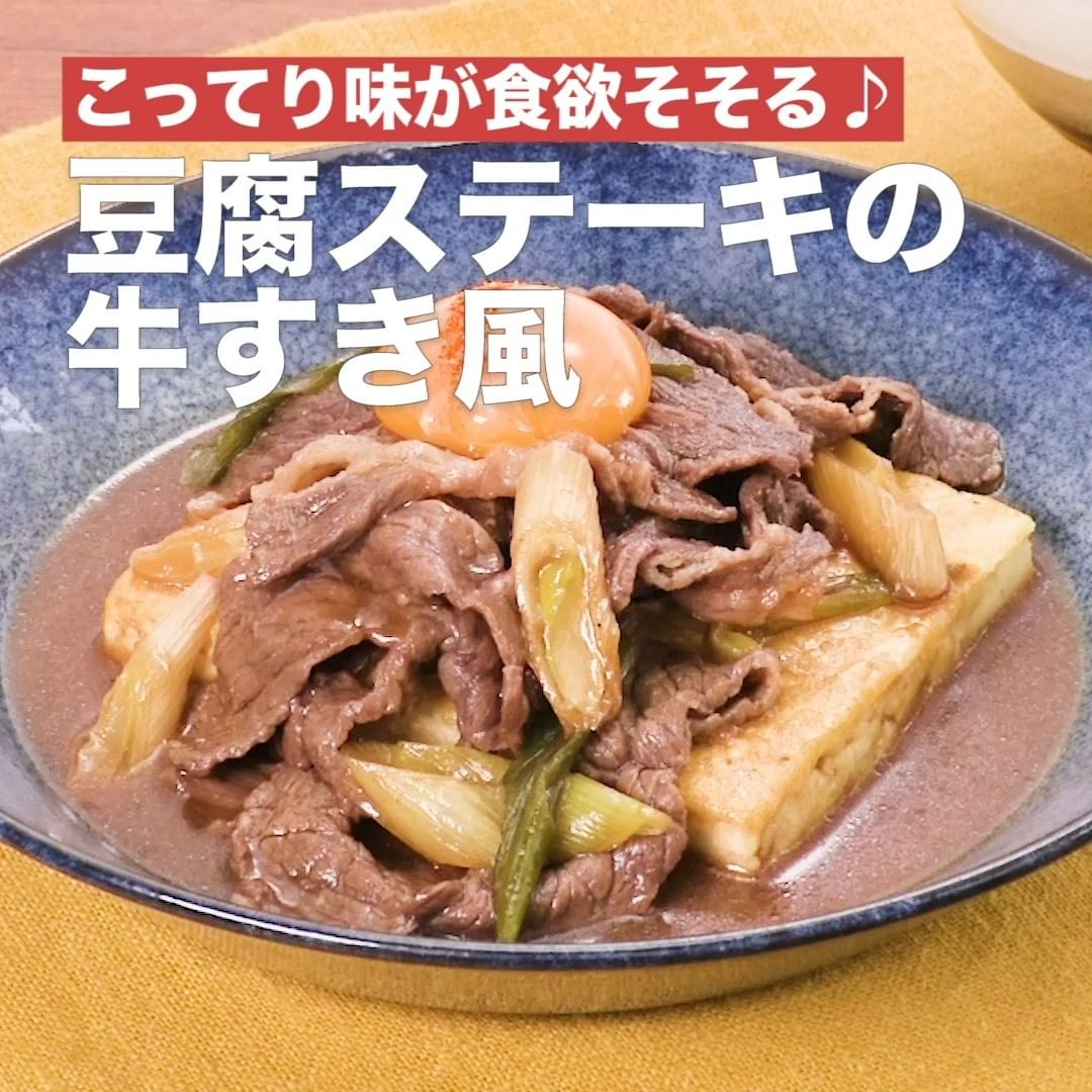 ⑦<こってり味が食欲そそる♪豆腐ステーキの牛すき風>