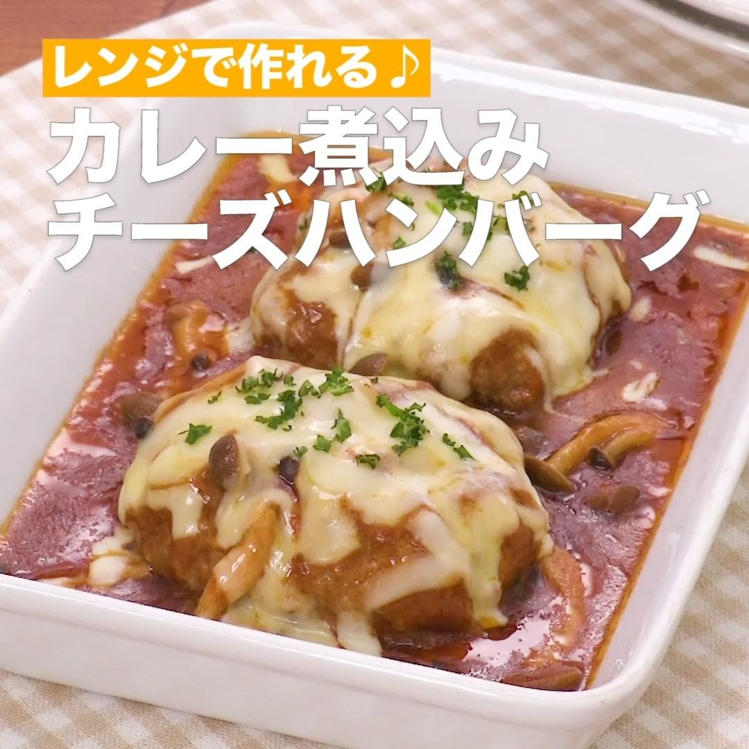 ①<レンジで作れる♪カレー煮込みチーズハンバーグ>